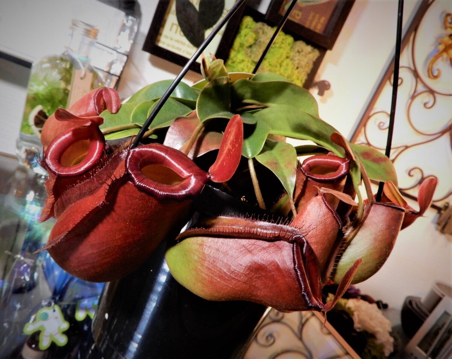 捕虫袋をもつ食虫植物です。捕虫袋が赤くなり独特の容姿です。
