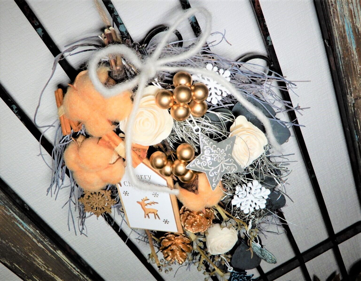 コットンやシナモン、松ぼっくりとクリスマスオーナメント・パーツで飾った