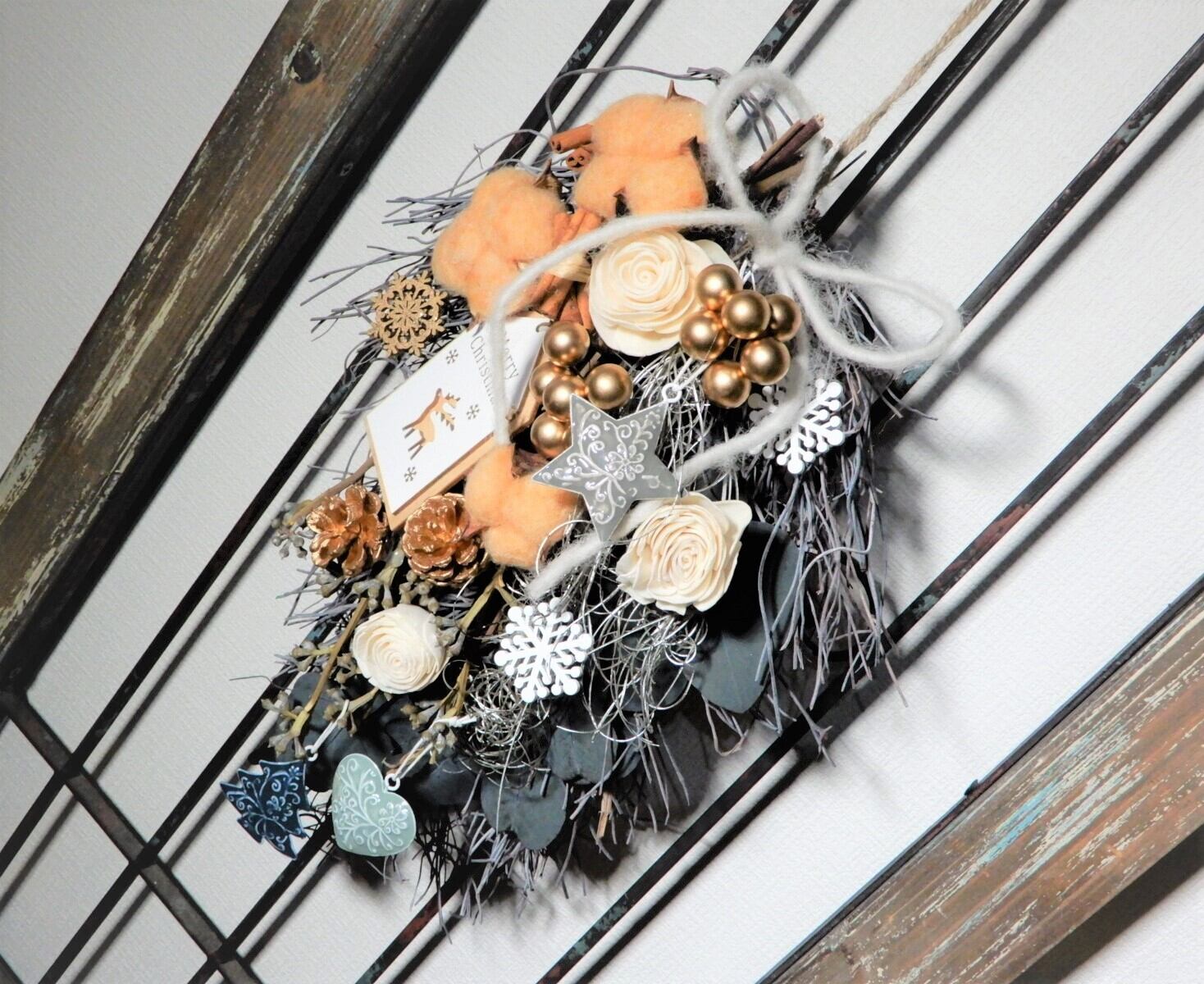 星・ハート・モミの木のオーナメントは花材に掛けているだけなので外れた場合は引っかけて下さい。