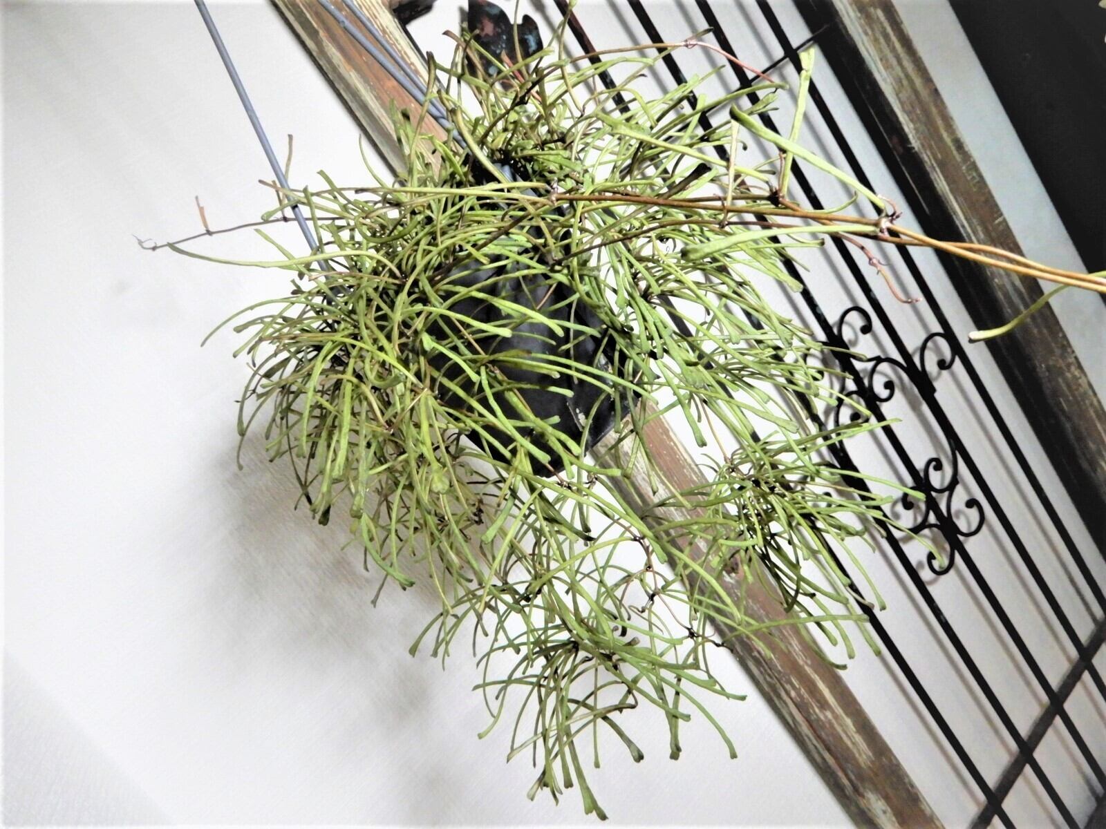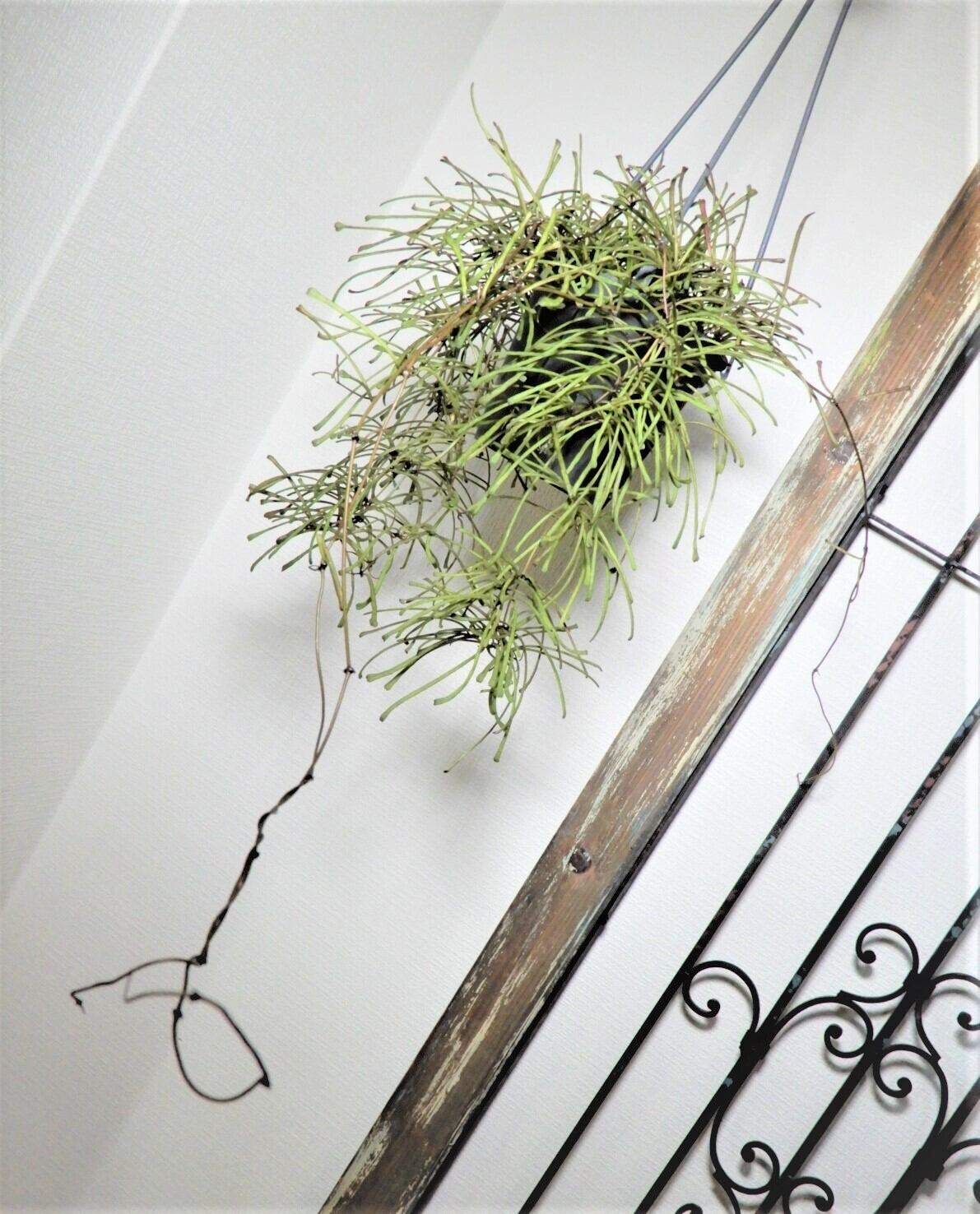 細い葉が珍しいホヤで垂れ下がった姿は繊細でインテリア効果が高く綺麗です。