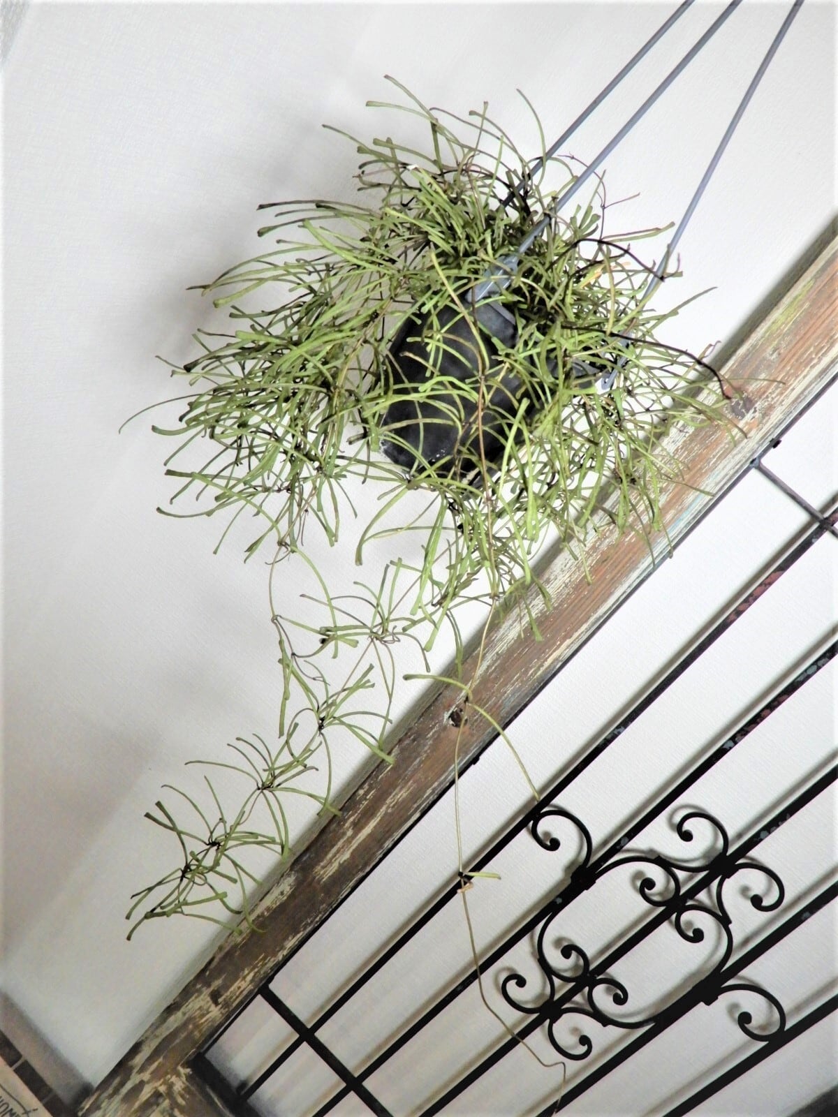 細い葉が珍しいホヤで垂れ下がった姿は繊細でインテリア効果が高く綺麗です。