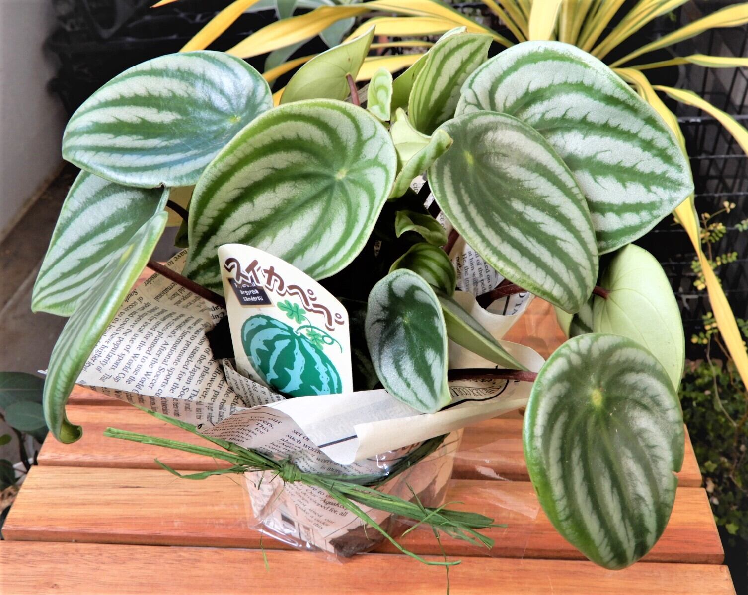 丸い葉にスイカに似た縦縞模様が入りその見た目からスイカぺぺとも呼ばれています。