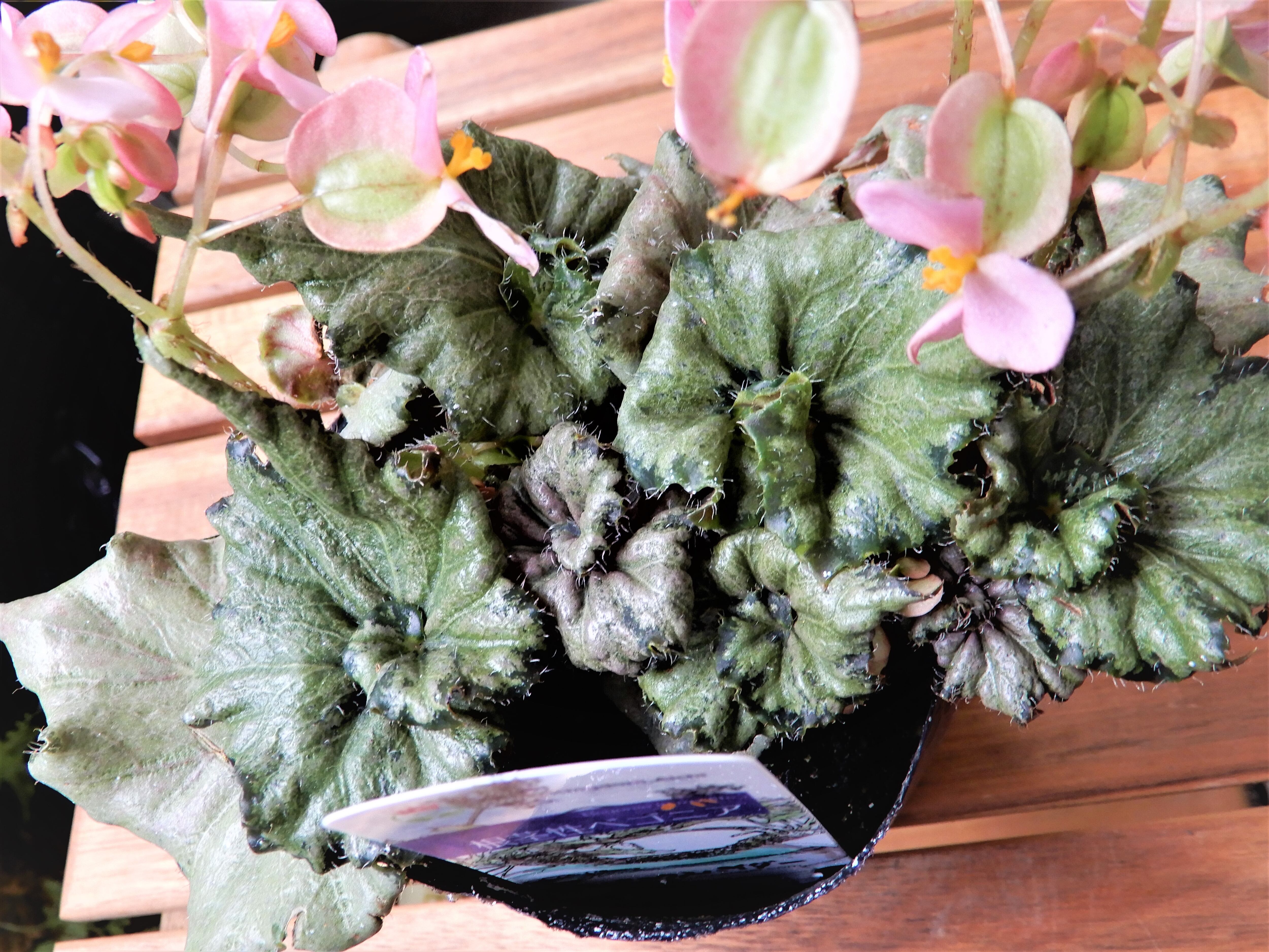 葉も花も楽しめるベゴニアです。開花は3月から6月に花芽を伸ばし薄ピンクの花を咲かせます。
