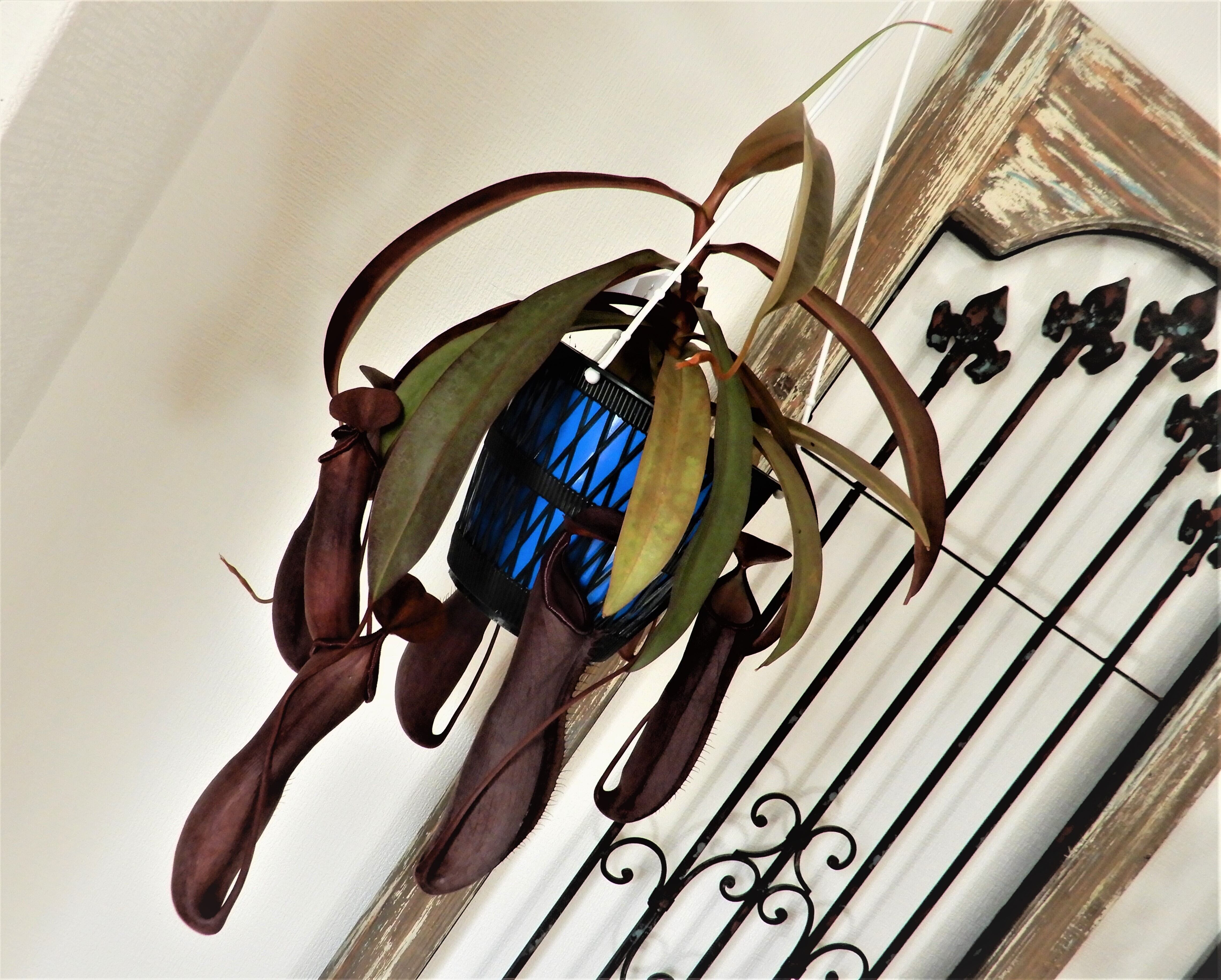捕食袋が特に赤くなる品種でダークレッドのカラーがシブく美しいく独特な姿はインテリアとしてもインパクト大です。