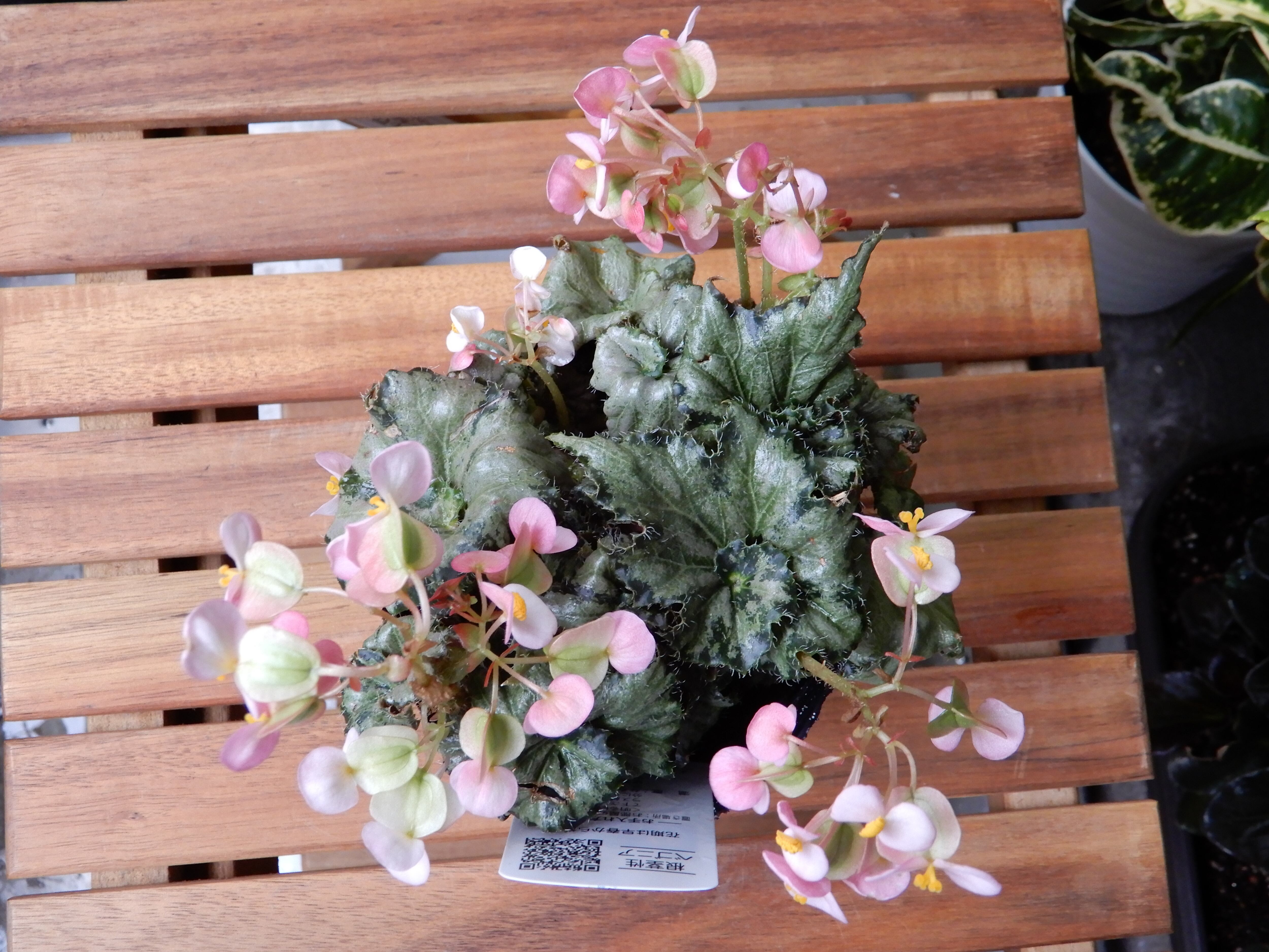 葉も花も楽しめるベゴニアです。開花は3月から6月に花芽を伸ばし薄ピンクの花を咲かせます。