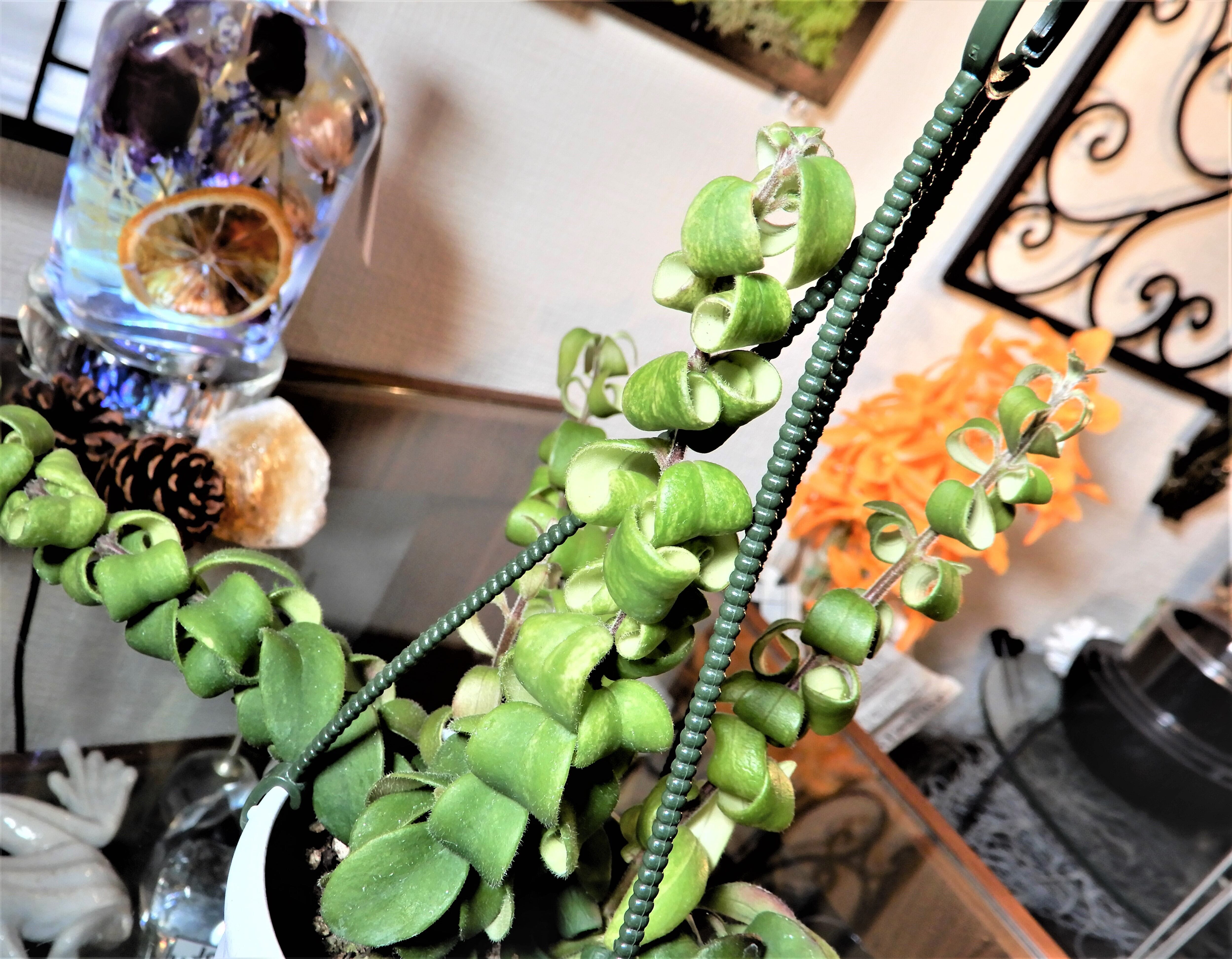 クルクルと巻いた葉が愛らしく垂れ下がって育ちます。